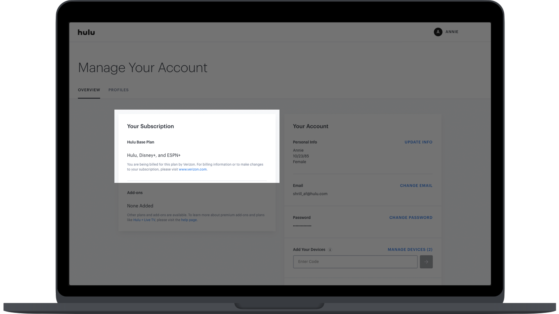 Managing A Verizon Billed Hulu Account